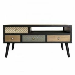 MACABANE ROMAIN – Chevet Noir 2 Tiroirs Marrons Motifs Pin – Noir Mat