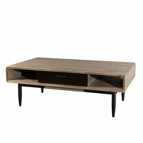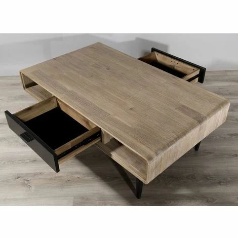 Table basse 2 tiroirs 2 niches bois chêne et métal noir. Dimensions : 120 x 70 x 42 cm. Article en Acacia et Acier. L’élégance dans toute sa splendeur avec cette gamme très chic qui marie l’industriel avec le scandinave.. Meuble monté