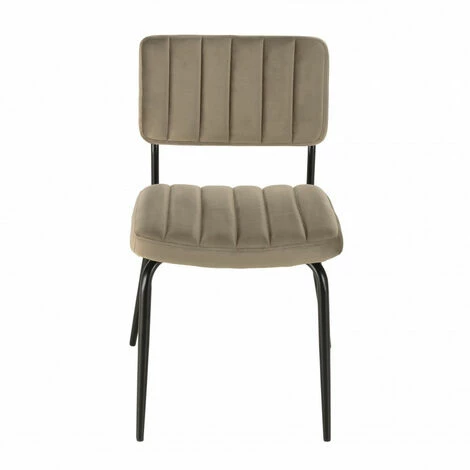 Chaise velours taupe pieds métal noir. Dimensions : 52 x 56 x 81 cm. Article en Velours Polyester / Acier / Mousse / Contreplaqué. Découvrez ces jolies assises tendances ! Composées de velours, ces chaises offrent une assise très confortable et douce. Sa teinte neutre se marie à merveille avec ses pieds en métal noir et s’associera à tout type de décoration grâce à sa simplicité. Meuble monté