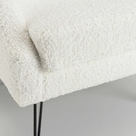 MACABANE ALBANE – Fauteuil Tissu Bouclette Blanc Pieds épingles Métal Noir – Écru