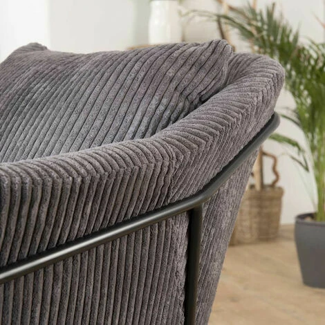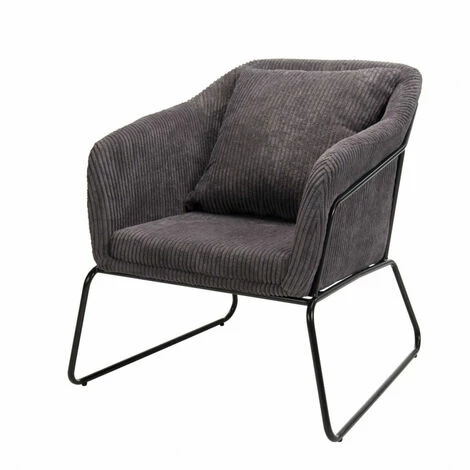 MACABANE ALBANE – Fauteuil Tissu Velours Cotelé Gris Anthracite Pieds évasés Métal – Gris Anthracite