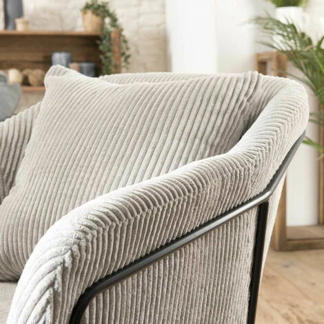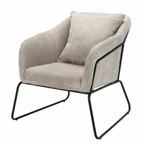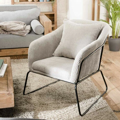 MACABANE ALBANE – Fauteuil Tissu Velours Cotelé Gris Perle Pieds évasés Métal – Gris Perle