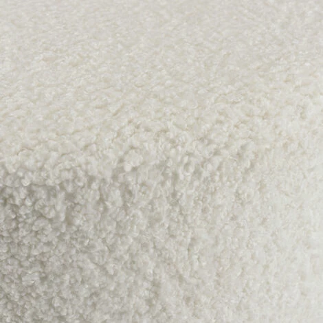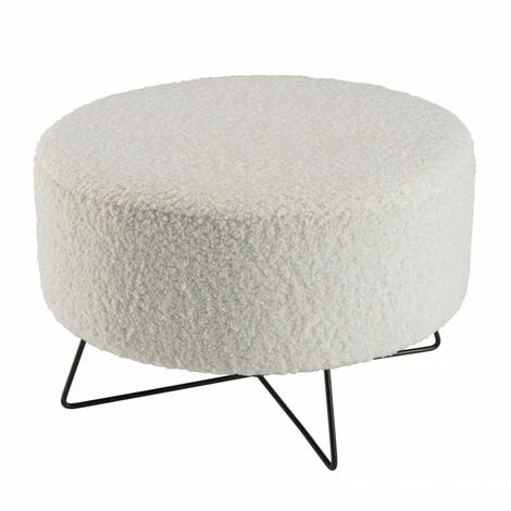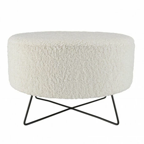 MACABANE ALBANE – Pouf Rond Tissu Bouclette Blanc Pieds Croisés Métal Noir – Blanc