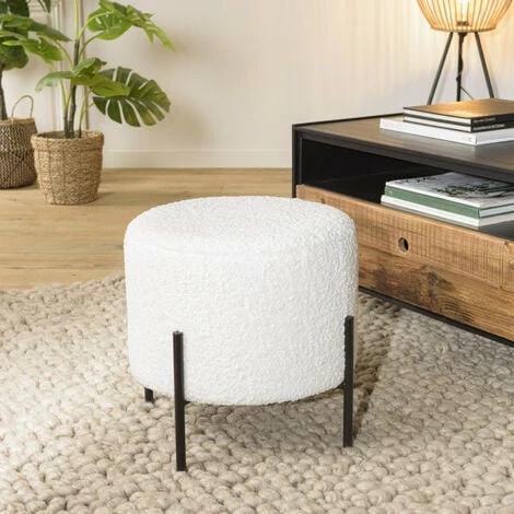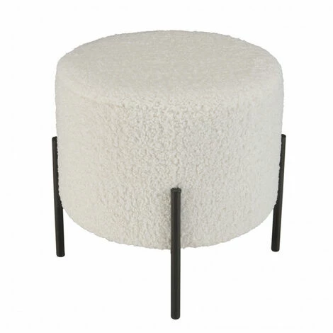 Tabouret rond 40x40cm tissu bouclette blanc pieds métal noir. Dimensions : 40 x 40 x 40 cm. Article en Tissu fausse fourrure/Métal. Craquez pour cet adorable tabouret rond ! Composé de tissu bouclette blanc, le rendu est vraiment chaleureux. Son petit format lui permet de s’adapter à chacune de vos pièces : salon, chambre ou dressing, il trouvera forcément sa place… Meuble monté, pieds à visser