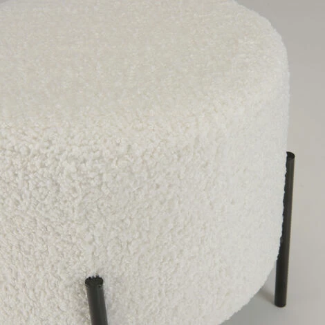 MACABANE ALBANE – Tabouret Rond 40x40cm Tissu Bouclette Blanc Pieds Métal Noir – Blanc