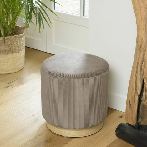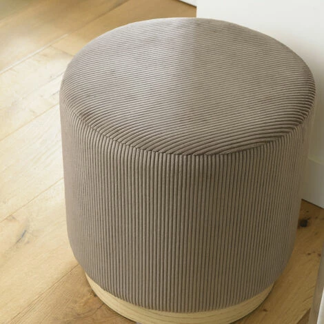 Tabouret rond 40x40cm velours côtelé marron base en bois. Dimensions : 40 x 40 x 40 cm. Article en Tissu Polyester / Nylon / Contreplaqué frêne / Mousse. Optez pour cet adorable pouf en velours côtelé marron. Son piètement en bois clair offre une base solide pour une assise agréable. Ses dimensions et ses couleurs neutres sont idéales pour le disposer dans la pièce de votre choix : bureau, salon, entrée, il trouvera forcément sa place dans votre maison ! Meuble monté