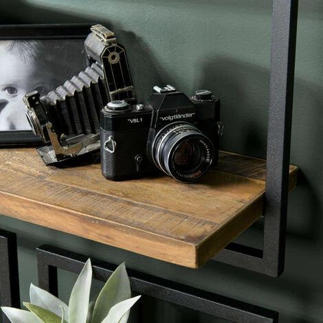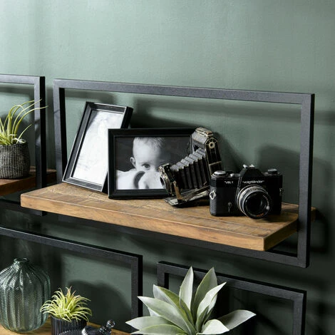 MACABANE ALIDA – Étagère Murale ‘L’ 1 Plateau Teck Recyclé Marron Structure Métal Noir – Marron / Noir