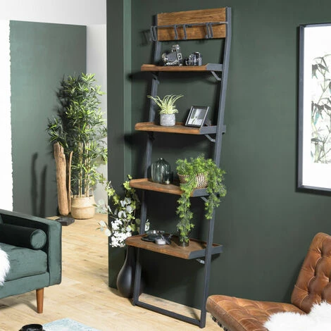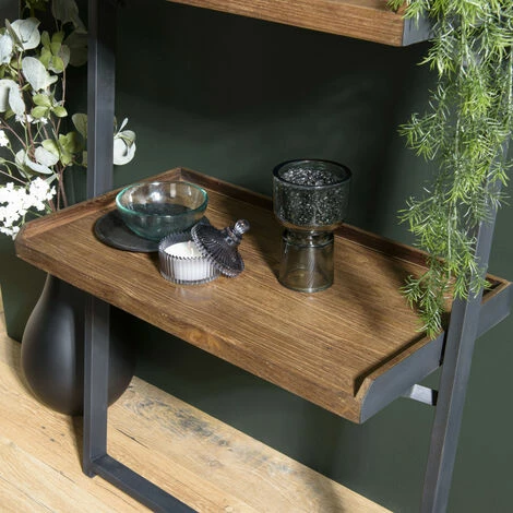 Étagère murale plateaux marron 4 niveaux teck recyclé structure métal noir. Dimensions : 69.5 x 35 x 220 cm. Article en Teck. Cet article est composé de bois recyclé ! Le bois recyclé est un bois récupéré de vieilles charpentes, de coques de bateaux ou tout bois de récupération ayant déjà eu une longue vie. C’est ce qui lui donne cet aspect vieilli et authentique avec ses imperfections qui font tout son charme. Acquérir du bois recyclé est une initiative écoresponsable qui permet de lutter contre la déforestation. Laissez vous transporter par cette belle étagère vintage. Ce produit en teck recyclé et acier permet d’optimiser votre rangement au maximum grâce à ses 4 niveaux et sa hauteur. Cette collection vous séduira grâce à l’alliance parfaite entre le naturel du bois recyclé et la légèreté des lignes actuelles. Meuble monté