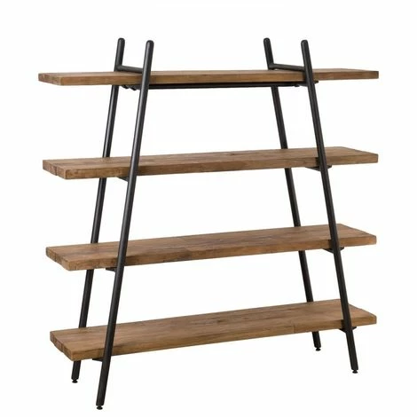 Étagère pyramidale 4 niveaux teck recyclé métal noir. Dimensions : 140 x 40 x 145,5 cm. Article en Teck recyclé et Métal. Cet article est composé de bois recyclé ! Le bois recyclé est un bois récupéré de vieilles charpentes, de coques de bateaux ou tout bois de récupération ayant déjà eu une longue vie. C’est ce qui lui donne cet aspect vieilli et authentique avec ses imperfections qui font tout son charme. Acquérir du bois recyclé est une initiative écoresponsable qui permet de lutter contre la déforestation. Meuble démonté