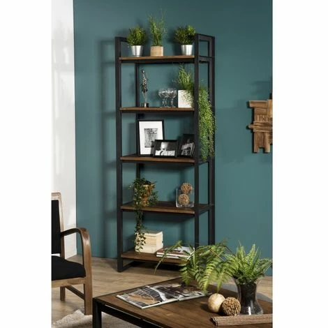 Étagère Recto-Verso 5 niveaux 75x40x200cm teck recyclé métal noir. Dimensions : 75 x 40 x 200 cm. Article en Teck recyclé et Métal. Cet article est composé de bois recyclé ! Le bois recyclé est un bois récupéré de vieilles charpentes, de coques de bateaux ou tout bois de récupération ayant déjà eu une longue vie. C’est ce qui lui donne cet aspect vieilli et authentique avec ses imperfections qui font tout son charme. Acquérir du bois recyclé est une initiative écoresponsable qui permet de lutter contre la déforestation. Meuble monté