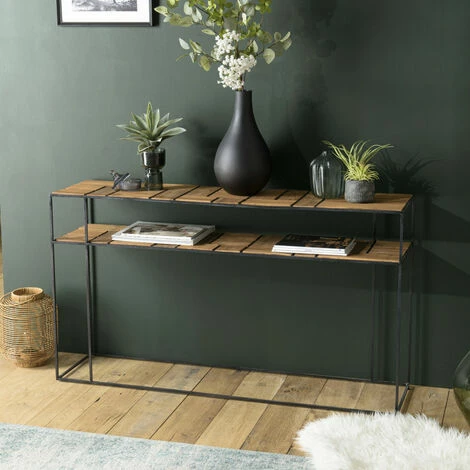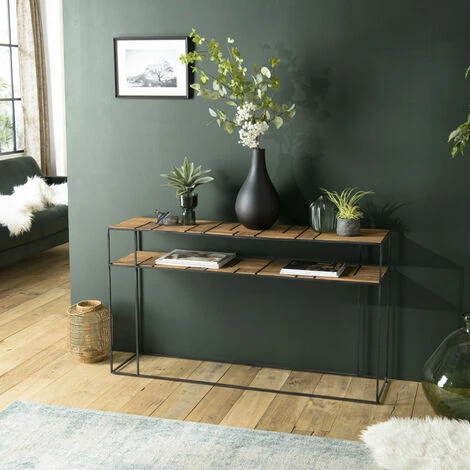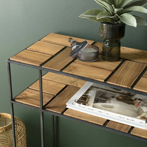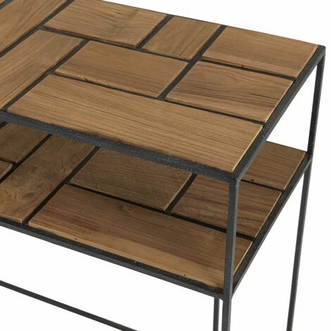 MACABANE ALIDA – Console Rectangulaire 2 Plateaux Teck Clair Métal Noir – Marron / Noir