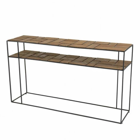 Console rectangulaire 2 plateaux teck clair métal noir. Dimensions : 140 x 35 x 79 cm. Article en Acier/Teck recyclé. Cet article est composé de bois recyclé ! Le bois recyclé est un bois récupéré de vieilles charpentes, de coques de bateaux ou tout bois de récupération ayant déjà eu une longue vie. C’est ce qui lui donne cet aspect vieilli et authentique avec ses imperfections qui font tout son charme. Acquérir du bois recyclé est une initiative écoresponsable qui permet de lutter contre la déforestation. Adoptez cette jolie console à 2 plateaux en bois de teck clair et acier noir. Très fantaisie, elle donnera de l’élégance et du charme à votre intérieur. Vous ne serez pas déçu(e)s par cette sublime pièce. Meuble monté