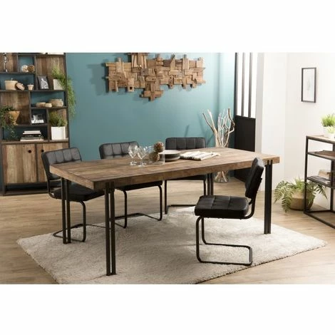Table à manger rectangulaire 200x90cm Teck recyclé Acacia Mahogany recyclé pieds métal noir. Dimensions : 200 x 90 x 80 cm. Article en Teck recyclé et Acacia, Mahogany recyclé. Cet article est composé de bois recyclé ! Le bois recyclé est un bois récupéré de vieilles charpentes, de coques de bateaux ou tout bois de récupération ayant déjà eu une longue vie. C’est ce qui lui donne cet aspect vieilli et authentique avec ses imperfections qui font tout son charme. Acquérir du bois recyclé est une initiative écoresponsable qui permet de lutter contre la déforestation. Meuble monté, pieds à visser