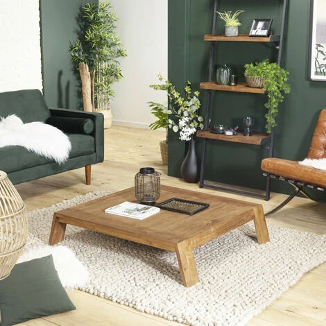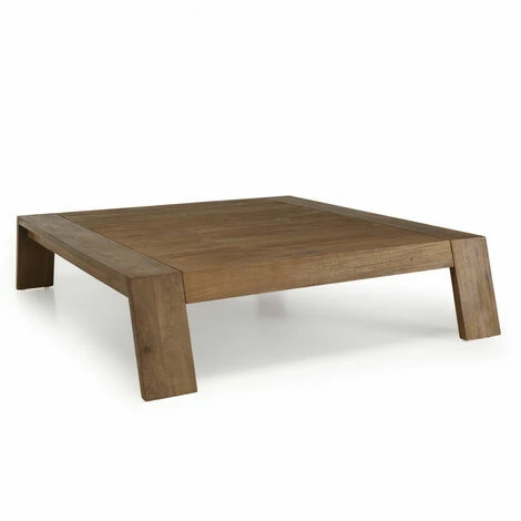 Table basse carrée marron 115x100cm pieds inclinés bois teck recyclé. Dimensions : 115 x 100 x 26 cm. Article en Teck. Cet article est composé de bois recyclé ! Le bois recyclé est un bois récupéré de vieilles charpentes, de coques de bateaux ou tout bois de récupération ayant déjà eu une longue vie. C’est ce qui lui donne cet aspect vieilli et authentique avec ses imperfections qui font tout son charme. Acquérir du bois recyclé est une initiative écoresponsable qui permet de lutter contre la déforestation. Laissez vous surprendre par cette table basse rectangulaire en teck hors du commun. Sa couleur classique et sa forme particulière sont le mélange parfait d’un meuble atypique. Son originalité va vous convaincre, elle fera des jaloux. Meuble monté
