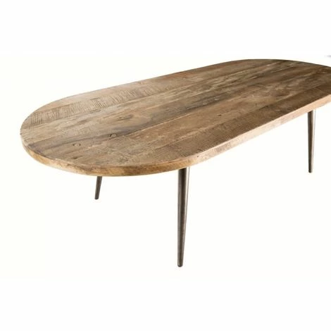 Table basse marron ovale teck recyclé pieds métal. Dimensions : 120 x 50 x 35 cm. Article en Teck recyclé et Métal. Cet article est composé de bois recyclé ! Le bois recyclé est un bois récupéré de vieilles charpentes, de coques de bateaux ou tout bois de récupération ayant déjà eu une longue vie. C’est ce qui lui donne cet aspect vieilli et authentique avec ses imperfections qui font tout son charme. Acquérir du bois recyclé est une initiative écoresponsable qui permet de lutter contre la déforestation. Meuble monté, pieds à visser