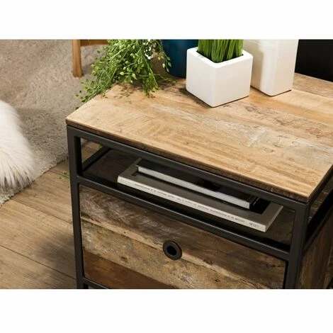 MACABANE ALIDA – Table Chevet D’appoint Avec Tablette 1 Tiroir Teck Recyclé Acacia Mahogany Recyclé Et Métal Noir – Brun
