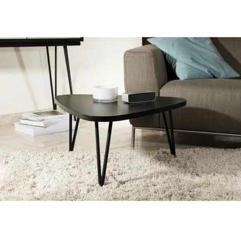 MACABANE AMBROISE – Table Basse Goutte D’eau Noire Pieds Métal Petit Modèle Bois – NOIR