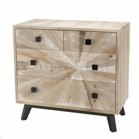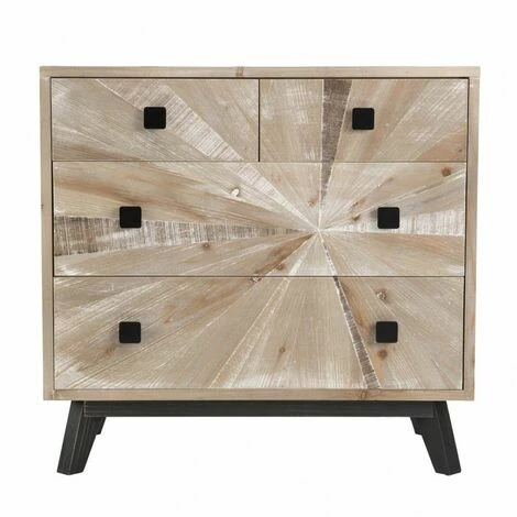 Commode beige scandi 4 tiroirs pieds noirs Sapin. Dimensions : 80 x 40 x 77 cm . Article en MDF plaqué sapin et Sapin. Cet article est composé de bois de sapin blanchi ! La finition de cette gamme est faite pour éclaircir le bois et rendre ces meubles exclusifs. Chaque produit est unique et peut varier selon la patine. Cette sublime commode tendance éclaircira votre pièce de vie à chaque instant et agrémentera vos journées. Ses quatre grands tiroirs optimiseront l’espace dans votre maison. Ses différentes teintes claires adouciront l’atmosphère et rendront votre salon ou votre chambre unique. Ce meuble fantaisie fabriqué en bois de sapin blanchi vous fera découvrir le monde Scandinave à travers cette collection rayonnante. Meuble monté, pieds à visser