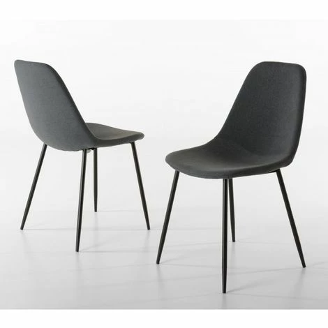 Lot de 2 chaises tissu anthracite pieds métal noir. Dimensions : 43 x 53 x 80 cm. Article en Tissu polyester et Métal. Élégante, tendance et pratique, cette collection fait carton plein dans le domaine des assises. Meuble monté, pieds à visser