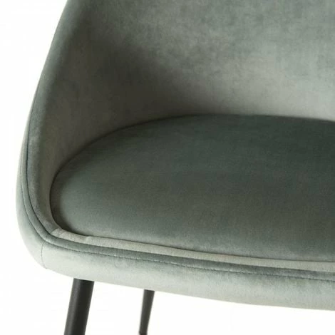 Lot de 2 chaises velours vert jade pieds métal noir. Dimensions : 53 x 51 x 78 cm. Article en Tissu polyester et Métal. Élégante, tendance et pratique, cette collection fait carton plein dans le domaine des assises. Meuble monté, pieds à visser