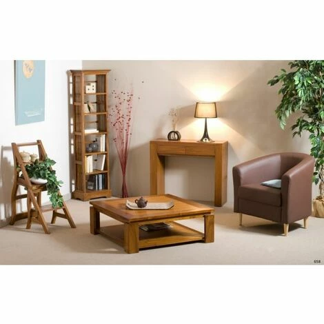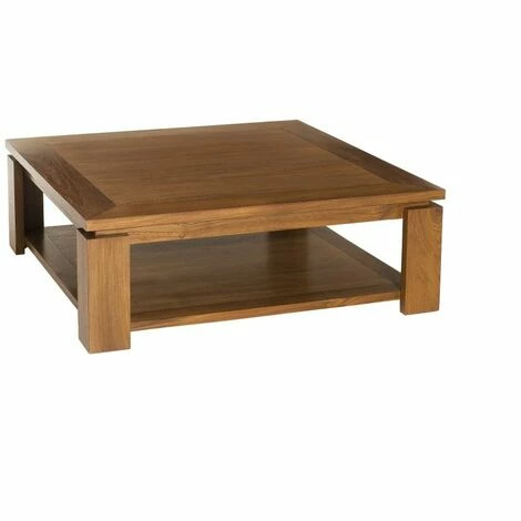 Table basse carrée marron sous plateau 90x90cm bois Teck. Dimensions : 90 x 90 x 32 cm. Article en Teck et Contreplaqué. Fabriquée de façon artisanale, découvrez le style contemporain aux teintes chaleureuses de ce meuble. Une belle table basse carrée pour tous ceux qui aiment les beaux meubles en bois. Réalisée en teck (piètement et ceinture de plateau) et en contreplaqué de teck (2 plateaux), elle apportera une touche ethnique à votre intérieur. Elle se mariera à merveille avec tous les types de déco grâce à sa ligne épurée, une teinte chaleureuse et une belle finition par un vernis à base de gomme laque pour un toucher velouté. Elle possède 2 plateaux très pratiques pour avoir sous la main vos revues préférées ! Meuble monté
