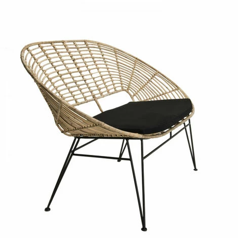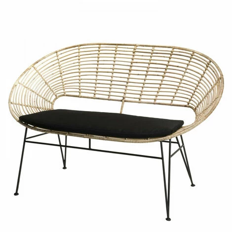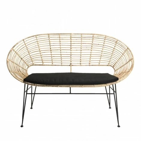 Canapé 2 places rotin naturel NEWPORT coussin noir pieds métal. Dimensions : 126 x 70 x 80,5 cm. Article en Rotin et Métal. Le grand retour du rotin avec cette gamme très tendance et rafraîchissante. Sa structure légère mais solide permet d’installer un vrai salon même dans les plus petits espaces. Laissez-vous tenter par cet adorable canapé en rotin naturel et métal noir, très nature et cosy à la fois. Ses matières douces et sa forme arrondie lui donnent un côté ethnique qui vous plaira. Vous pourrez totalement le mettre en valeur grâce à de jolies plantes ou une décoration originale. Le coussin noir n’est pas fixe, ce qui permet de le laver et de le changer si vous souhaitez personnaliser ce canapé pouvant accueillir 2 personnes. Meuble monté, pieds à visser