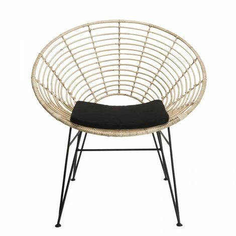 MACABANE CHLOE – Fauteuil Rotin Naturel MANHATTAN Coussin Noir Pieds Métal – Naturel