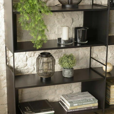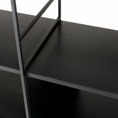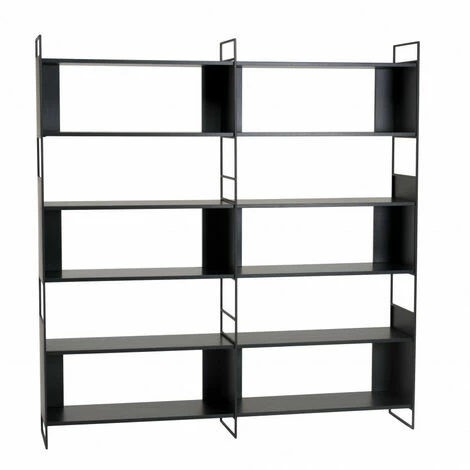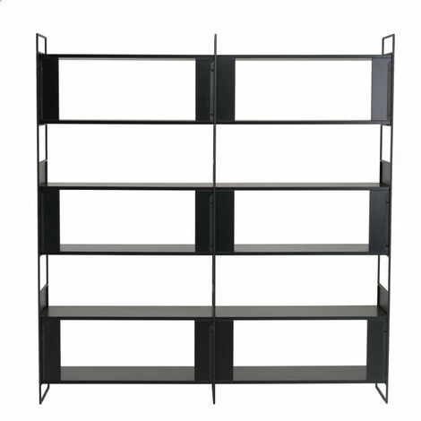 Étagère 10 niches 5 niveaux noire piètement métal. Dimensions : 180 x 35 x 190 cm. Article en Fer/MDF. Meuble démonté