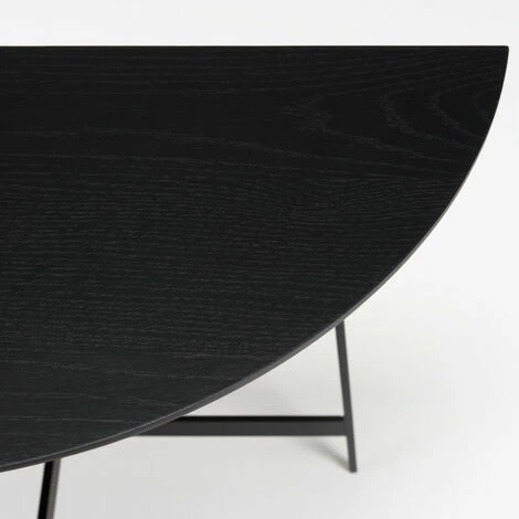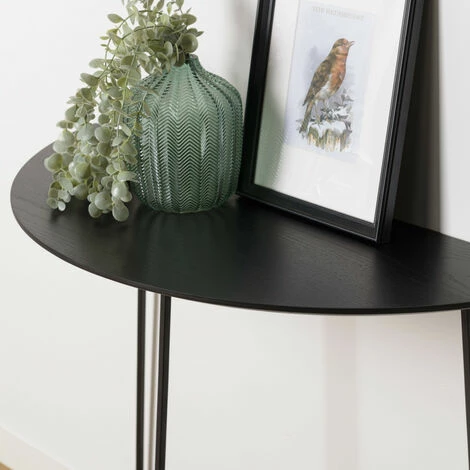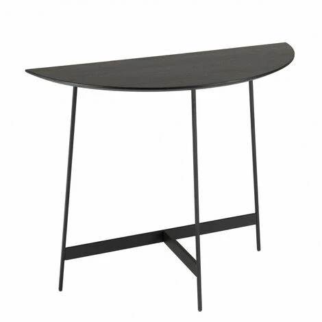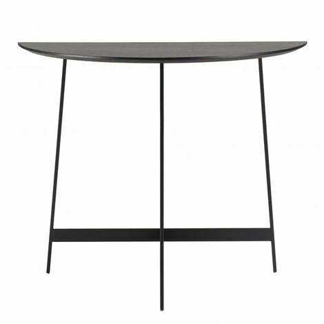 Console demi-lune noire 83×35 cm piètement métal. Dimensions : 83 x 35 x 70 cm. Article en Fer/MDF plaqué chêne. Meuble démonté