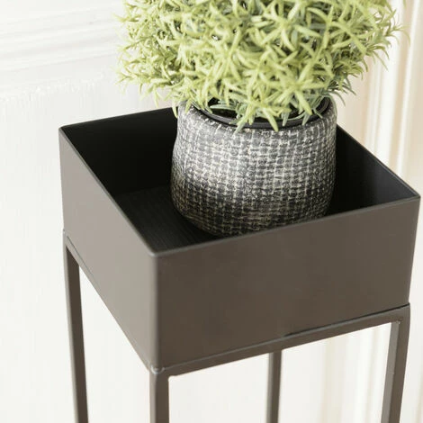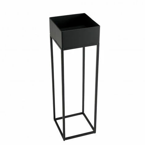 Sellette carrée / porte plantes MM noire piètement métal. Dimensions : 18 x 18 x 60 cm. Article en Fer/MDF. Meuble monté