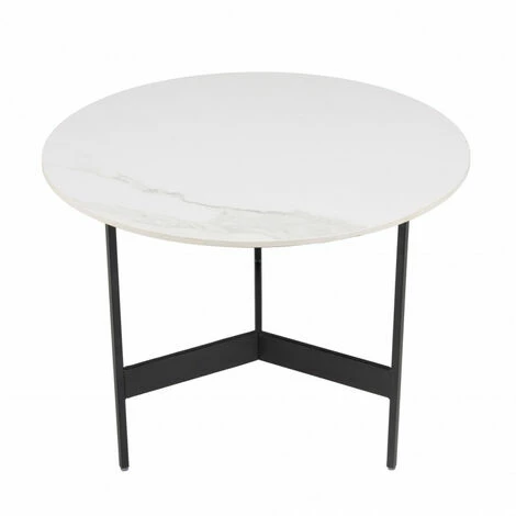 MACABANE DALY – Table Basse Ronde 50x50cm Plateau Effet Marbre Piètement Métal – Blanc / Noir