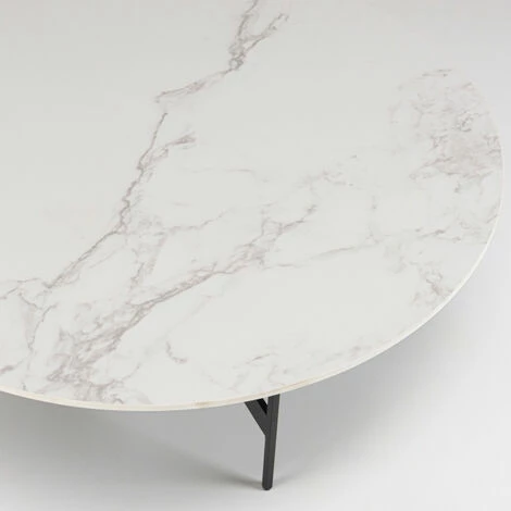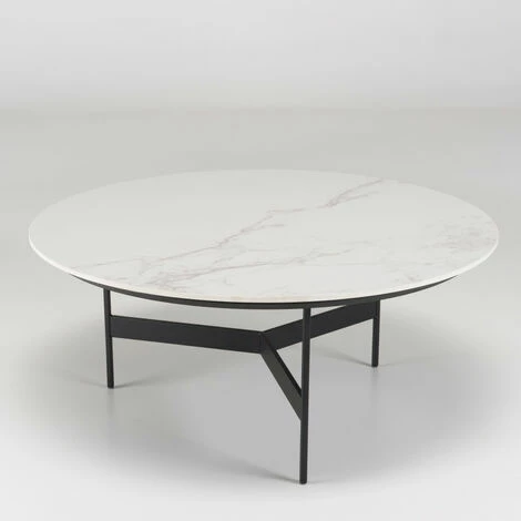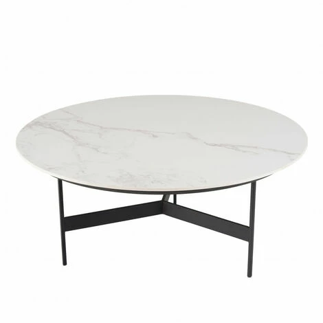 MACABANE DALY – Table Basse Ronde 78x78cm Plateau Effet Marbre Piètement Métal – Noir