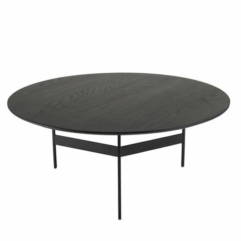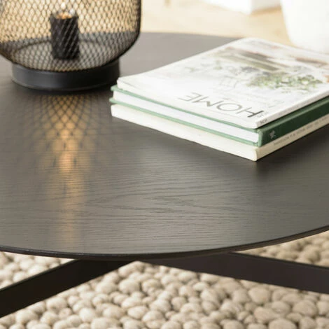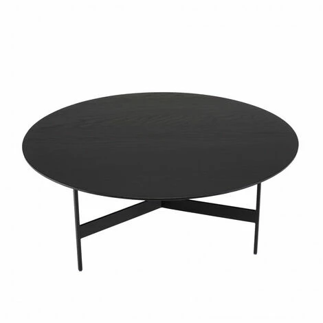 Table basse ronde noire 78x78cm piètement métal. Dimensions : 78 x 78 x 33 cm. Article en Fer/MDF plaqué chêne. Meuble monté
