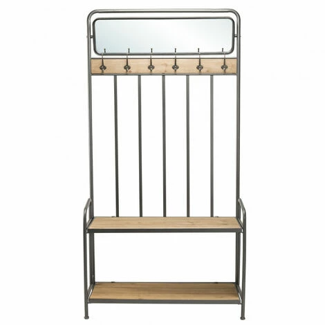 Meuble d’entrée porte-manteau bois Sapin et métal avec miroir 2 étagères. Dimensions : 102 x 38 x 198 cm. Article en Sapin et Métal. Découvrez des meubles liant parfaitement la chaleur du bois avec le style industriel du métal pour décorer votre intérieur avec élégance.