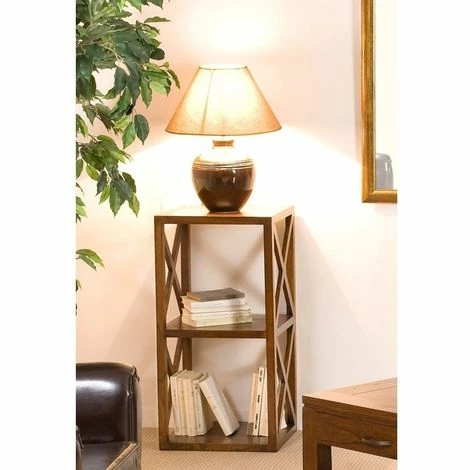 Étagère marron 2 cases 40 cm croisillons bois Mindi. Dimensions : 40 x 35 x 80 cm. Article en Mindi et Contreplaqué. Une touche ethnique, une ligne contemporaine pour rendre l’atmosphère chaleureuse. Idéal pour y ranger vos livres ainsi que des objets de décoration, cette étagère en bois exotique se marie parfaitement à votre intérieur grâce à ses lignes sobres et décors croisillons. Meuble monté