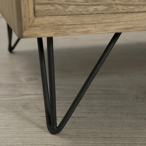 MACABANE EDITH – Buffet Bois Naturel 1 Porte 3 Tiroirs Pieds épingles Métal Noir – Marron