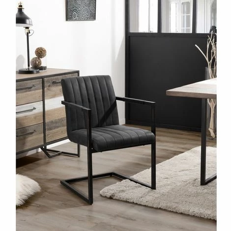 Lot de 2 fauteuils tissu gris anthracite pieds métal noir. Dimensions : 56 x 62 x 83 cm. Article en PU et acier. Élégante, tendance et pratique, cette collection fait carton plein dans le domaine des assises. Meuble démonté