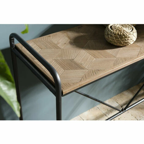Console plateau naturel Sapin marqueté pieds métal noir. Dimensions : 120 x 40 x 80,5 cm. Article en Sapin et Métal. Créez votre jardin d’hiver. Retrouver son jardin dans son intérieur, telle est la mission de cette très belle gamme. Avec toute sa panoplie de meubles en zinc, en sapin et en métal. On adore !!! Console plateau Sapin marqueté pieds métal Meuble monté, pieds à visser