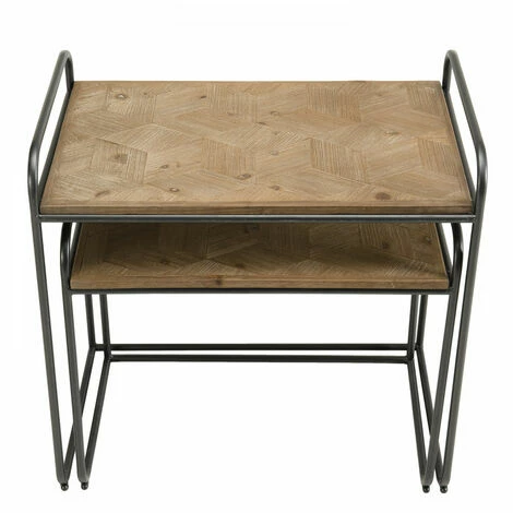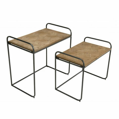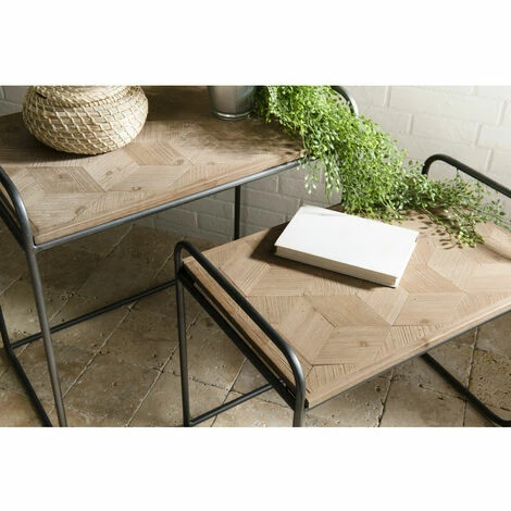 Set de 2 tables d’appoint gigognes plateaux rectangulaires Sapin marqueté pieds métal. Dimensions : 60 x 38 x 60 cm. Article en Sapin et Métal. Créez votre jardin d’hiver. Retrouver son jardin dans son intérieur, telle est la mission de cette très belle gamme. Avec toute sa panoplie de meubles en zinc, en sapin et en métal. On adore !!! Meuble monté