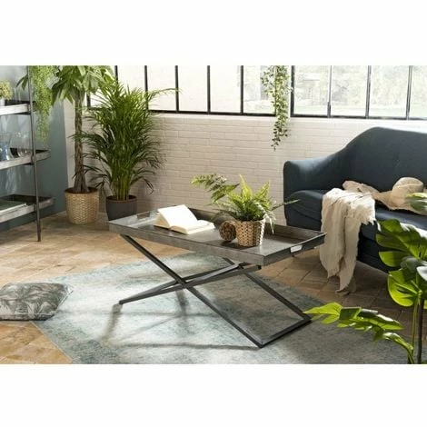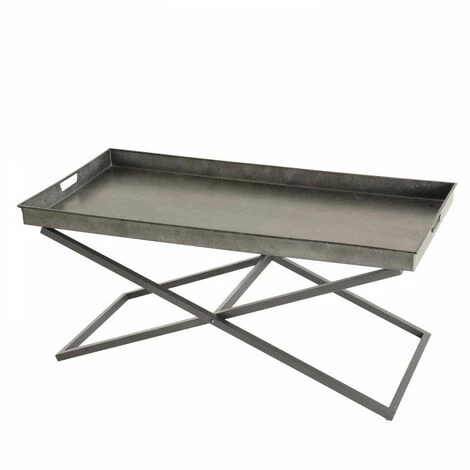 Table basse rectangulaire grise plateau Zinc pieds croisés métal. Dimensions : 101,5 x 51 x 46 cm. Article en Zinc et Métal. Créez votre jardin d’hiver. Retrouver son jardin dans son intérieur, telle est la mission de cette très belle gamme. Avec toute sa panoplie de meubles en zinc, en sapin et en métal. On adore !!! Meuble monté, pieds à visser
