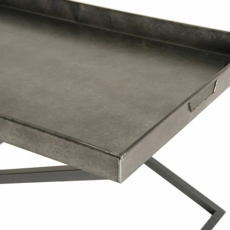 MACABANE HABY – Table Basse Rectangulaire Grise Plateau Zinc Pieds Croisés Métal – Anthracite