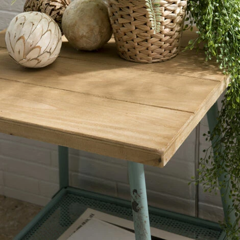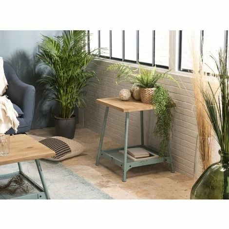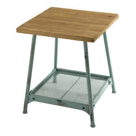 Table d’appoint scandi plateau carré 51x51cm Sapin 1 étagère et pieds métal bleu clair. Dimensions : 51 x 51 x 60 cm. Article en Sapin et Métal. Créez votre jardin d’hiver. Retrouver son jardin dans son intérieur, telle est la mission de cette très belle gamme. Avec toute sa panoplie de meubles en zinc, en sapin et en métal. On adore !!! Meuble monté, pieds à visser