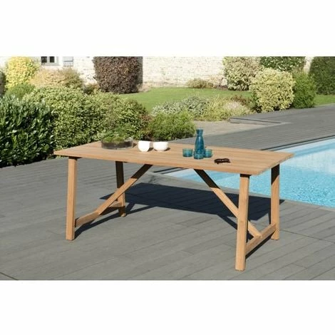 Table de jardin en bois 6/8 personnes. Dimensions : 180 x 90 x 76 cm. Article en teck brut. Cette grande table de jardin en teck brut vous permettra d’accueillir famille et amis afin de passer des moments agréables et conviviaux. Le teck est un bois précieux et imputrescible très utilisé pour la fabrication de meubles de jardin car il est extrêmement résistant aux agressions climatiques les plus rudes et constantes (humidité). Nos meubles de jardin sont en teck massif de première qualité, ce qui exclut principalement les défauts et offre une finition qualitative. Les plantations Le bois utilisé dans la fabrication de nos meubles de jardin provient uniquement de forêts de replantation provenant de l’île de Java. Ces forêts sont gérées par l’organisme d’état Perum Perhutani, qui détermine une saisonnalité et un quota de coupe afin d’assurer la durabilité de la ressource. L’entretien Les meubles en teck peuvent rester à l’extérieur sans aucun traitement particulier. Après quelques mois voire quelques années, le bois prendra une teinte grisée. Pour conserver la couleur initiale de votre meuble ou pour retirer une tache, poncez légèrement ce dernier avec un papier de verre fin. Vous pouvez également appliquer une huile de teck en début de saison, il sera ainsi protégé et de couleur miel. Il est fortement conseillé d’abriter ce mobilier et de le protéger du gel pendant la période hivernale afin qu’il ne s’abîme pas. Meuble monté, pieds à visser
