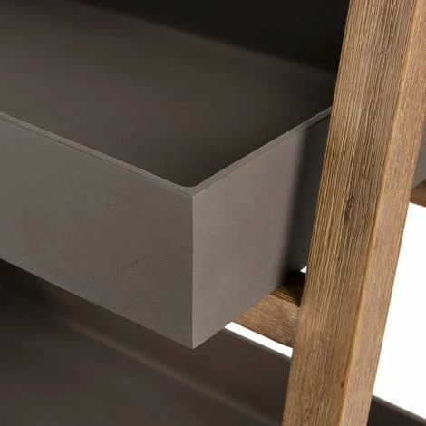 MACABANE HANS – Porte-plantes, étagère En Résine, Effet Béton Et Acacia – PM – Anthracite