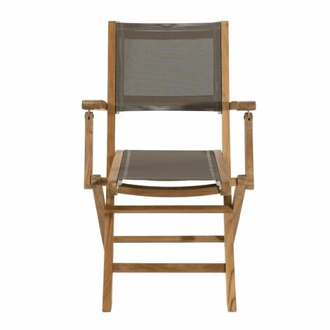 Lot de 2 fauteuils de jardin en bois pliants. Dimensions : 56 x 64 x 88 cm. Articles en teck brut et textilène taupe. Pour cet été, laissez-vous tenter par ces chaises de jardin en teck et en toile textilène taupe. Leurs couleurs fraîches et douces sont parfaites pour passer la saison estivale dans le confort et la convivialité. Le teck est un bois précieux et imputrescible très utilisé pour la fabrication de meubles de jardin car il est extrêmement résistant aux agressions climatiques les plus rudes et constantes (humidité). Nos meubles de jardin sont en teck massif de première qualité, ce qui exclut principalement les défauts et offre une finition de qualité. Les plantations Le bois utilisé dans la fabrication de nos meubles de jardin provient uniquement de forêts de replantation provenant de l’île de Java. Ces forêts sont gérées par l’organisme d’état Perum Perhutani, qui détermine une saisonnalité et un quota de coupe afin d’assurer la durabilité de la ressource. L’entretien Les meubles en teck peuvent rester à l’extérieur sans aucun traitement particulier. Après quelques mois voire quelques années, le bois prendra une teinte grisée. Pour conserver la couleur initiale de votre meuble ou pour retirer une tache, poncez légèrement ce dernier avec un papier de verre fin. Vous pouvez également appliquer une huile de teck en début de saison, il sera ainsi protégé et de couleur miel. Il est fortement conseillé d’abriter ce mobilier et de le protéger du gel pendant la période hivernale afin qu’il ne s’abîme pas. Meuble monté