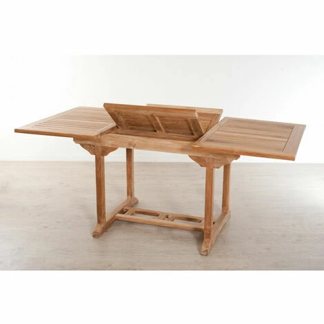 Salon de jardin en bois 4/6 personnes. Dimensions : 120/180 x 90 x 75 cm. Articles en teck brut et textilène. LOT COMPRENANT : 1 table rectangulaire 120/180*90cm référence 501165 – 2 lots de 2 chaises pliantes textilène couleur taupe référence 501214 Ce magnifique salon de jardin en teck vous donnera envie de profiter de votre extérieur et du soleil. Les teintes douces et rafraîchissantes du teck se marient très bien au tissu de ces 6 chaises pliantes et sont parfaites pour l’été. Cette grande table vous permettra d’accueillir famille et amis, et elle est aussi extensible ce qui permet à cet ensemble de jardin d’être très fonctionnel. Le teck est un bois précieux et imputrescible très utilisé pour la fabrication de meubles de jardin car il est extrêmement résistant aux agressions climatiques les plus rudes et constantes (humidité). Nos meubles de jardin sont en teck massif de première qualité, ce qui exclut principalement les défauts et offre une finition qualitative. Les plantations Le bois utilisé dans la fabrication de nos meubles de jardin provient uniquement de forêts de replantation provenant de l’île de Java. Ces forêts sont gérées par l’organisme d’état Perum Perhutani, qui détermine une saisonnalité et un quota de coupe afin d’assurer la durabilité de la ressource. L’entretien Les meubles en teck peuvent rester à l’extérieur sans aucun traitement particulier. Après quelques mois voire quelques années, le bois prendra une teinte grisée. Pour conserver la couleur initiale de votre meuble ou pour retirer une tache, poncez légèrement ce dernier avec un papier de verre fin. Vous pouvez également appliquer une huile de teck en début de saison, il sera ainsi protégé et de couleur miel. Il est fortement conseillé d’abriter ce mobilier et de le protéger du gel pendant la période hivernale afin qu’il ne s’abîme pas. Meuble monté, pieds à visser