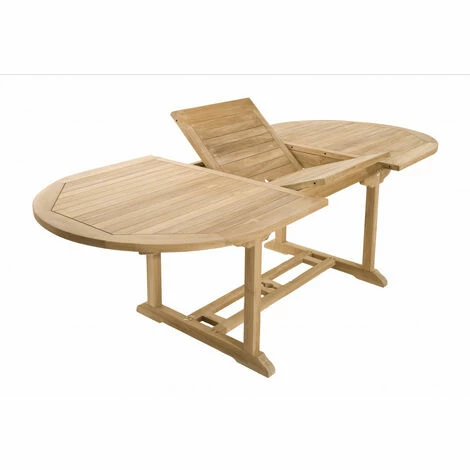 Salon de jardin en bois 8/10 personnes. Dimensions : 180/240 x 100 x 75 cm. Articles en teck brut et textilène taupe. LOT COMPRENANT : 1 table ovale extensible 180/240*100cm référence 500894 – 3 lots de 2 chaises pliantes textilène couleur taupe référence 501214 Ce magnifique salon de jardin en teck vous donnera envie de profiter du soleil. Les teintes douces et rafraîchissantes du teck se marient très bien au tissu de ces 6 chaises pliantes et sont parfaites pour l’été. Cette grande table vous permettra d’accueillir famille et amis, et elle est aussi extensible ce qui permet à cet ensemble de jardin d’être très fonctionnel. Le teck est un bois précieux et imputrescible très utilisé pour la fabrication de meubles de jardin car il est extrêmement résistant aux agressions climatiques les plus rudes et constantes (humidité). Nos meubles de jardin sont en teck massif de première qualité, ce qui exclut principalement les défauts et offre une finition qualitative. Les plantations Le bois utilisé dans la fabrication de nos meubles de jardin provient uniquement de forêts de replantation provenant de l’île de Java. Ces forêts sont gérées par l’organisme d’état Perum Perhutani, qui détermine une saisonnalité et un quota de coupe afin d’assurer la durabilité de la ressource. L’entretien Les meubles en teck peuvent rester à l’extérieur sans aucun traitement particulier. Après quelques mois voire quelques années, le bois prendra une teinte grisée. Pour conserver la couleur initiale de votre meuble ou pour retirer une tache, poncez légèrement ce dernier avec un papier de verre fin. Vous pouvez également appliquer une huile de teck en début de saison, il sera ainsi protégé et de couleur miel. Il est fortement conseillé d’abriter ce mobilier et de le protéger du gel pendant la période hivernale afin qu’il ne s’abîme pas. Meuble monté, pieds à visser