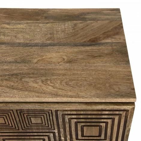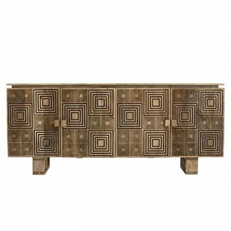 MACABANE IRENE – Buffet Bois Manguier 177x45cm 4 Portes 2 étagères Motifs Noirs Goa – Naturel