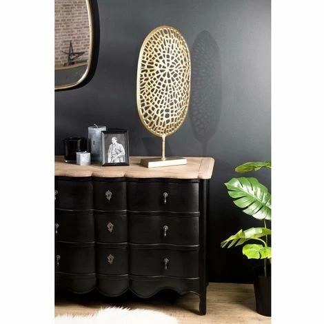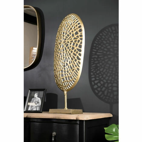 Décoration ovale sculpture aluminium doré. Dimensions : 33 x 11 x 77,5 cm. Article en Aluminium. Collection indéfinissable tellement elle resplendit par la noblesse de sa matière. En un clin d’œil, cette gamme aux allures orientales illuminera votre intérieur avec sa couleur dorée et argentée. Laissez-vous séduire par cette magnifique décoration en aluminium doré… Finement travaillée, elle apportera une allure orientale à votre maison. Vous pourrez la disposer dans votre salle, votre chambre ou même votre bureau, elle s’adaptera à chacune de vos pièces et y ajoutera une petite touche de délicatesse. Meuble monté