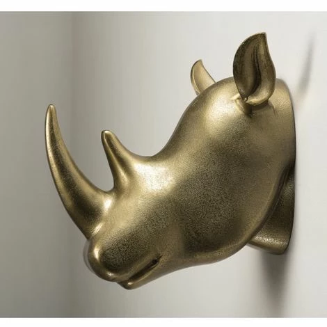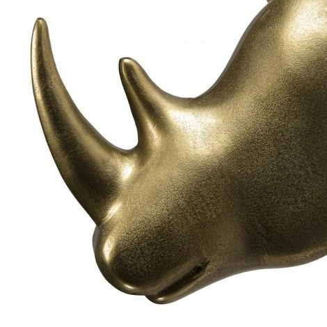 Décoration sculpture rhinocéros aluminium doré. Dimensions : 29 x 33 x 33 cm. Article en Aluminium. Collection indéfinissable tellement elle resplendit par la noblesse de sa matière. En un clin d’œil, cette gamme aux allures orientales illuminera votre intérieur avec sa couleur dorée et argentée. Cette décoration murale insolite va étonner vos convives ! Tape à l’œil, ce rhinocéros en aluminium doré trouvera sa place dans chacune de vos pièces : entrée, cuisine ou salle il sera mis en valeur. Il va faire des jaloux… Meuble monté